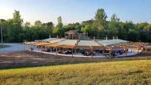 Outdoors, on the Harvest Stage